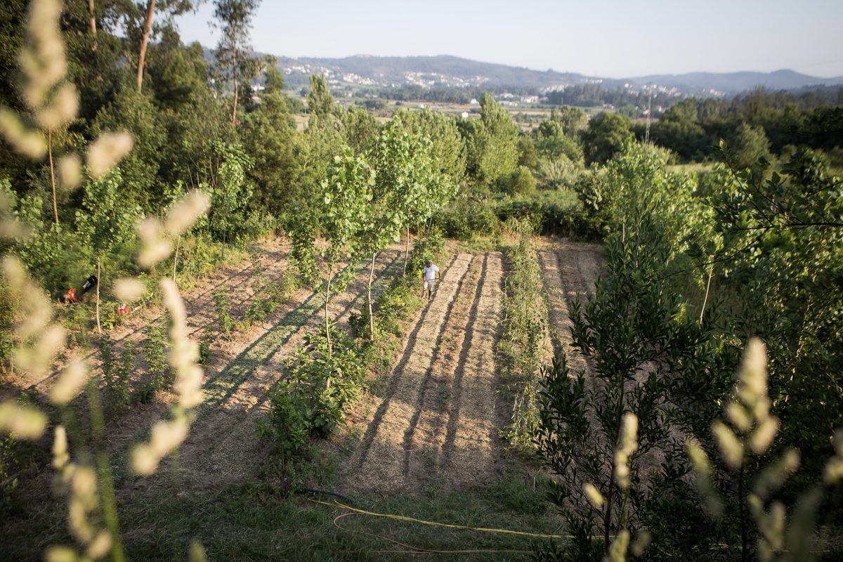 Já testemunhei muitos incêndios com a câmara na mão, enquanto fotojornalista, mas em pleno Verão nunca vi um vendaval como o daquela madrugada em que o fogo me bateu à porta de casa. Foi o vento que se impôs primeiro: árvores a partir não pelo fogo, mas pela força do ar. O lume correu, sim, e fez estragos numa antiga cultura de aromáticas, numa estufa de apoio e na floresta em volta. Mas as agroflorestas ficaram. Havia humidade no chão, sombra nas copas, manta a cobrir a pele da terra. A vegetação densa e não resinosa em volta da casa funcionou como escudo para as faúlhas empurradas pelo vento. O desenho da sucessão, as podas a cadenciar crescimento, os consórcios densos que evitam vazios de vida, tudo isso fez diferença. Ao amanhecer, depois da angústia, ficou um mapa de esperança: a mancha verde intacta a contrastar com terra em cinza. Um mês depois plantámos o primeiro módulo de agrofloresta na área afetada; na primavera seguinte, reforçámos com o segundo. Hoje, mais de cinquenta espécies de ciclos e estratos diferentes crescem onde o lume passou. Não houve milagre: houve sucessão guiada, solo sempre coberto, gestão da luz. Com estrutura de solo e tempo, a natureza volta a germinar e aqui está uma pista prática para mitigar a severidade dos incêndios em Portugal.
