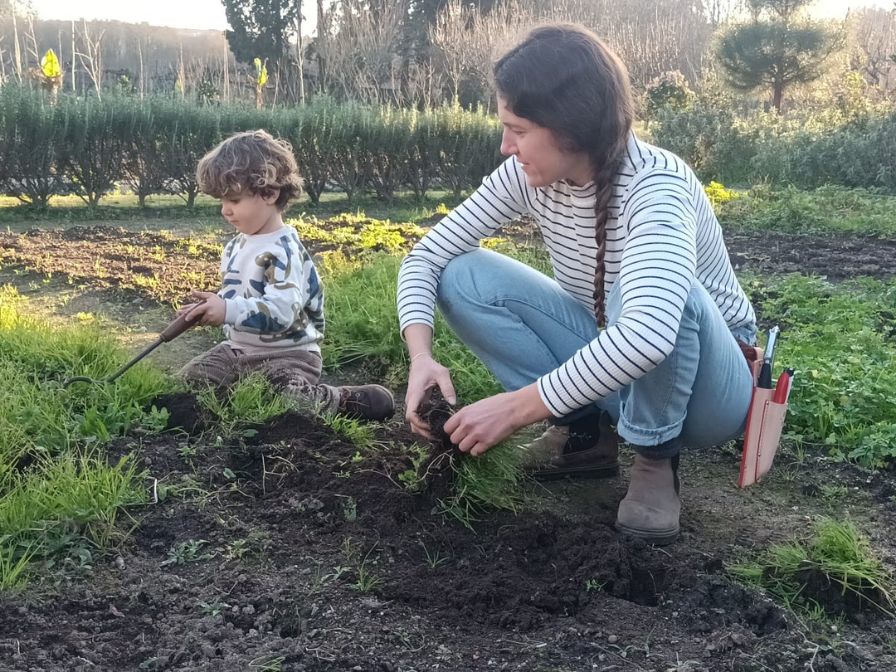 Juntos, vivem o propósito de curar o solo e reaproximar as pessoas da terra, guiando processos de aprendizagem, reflorestamento e reconexão com a vida em comunidade.